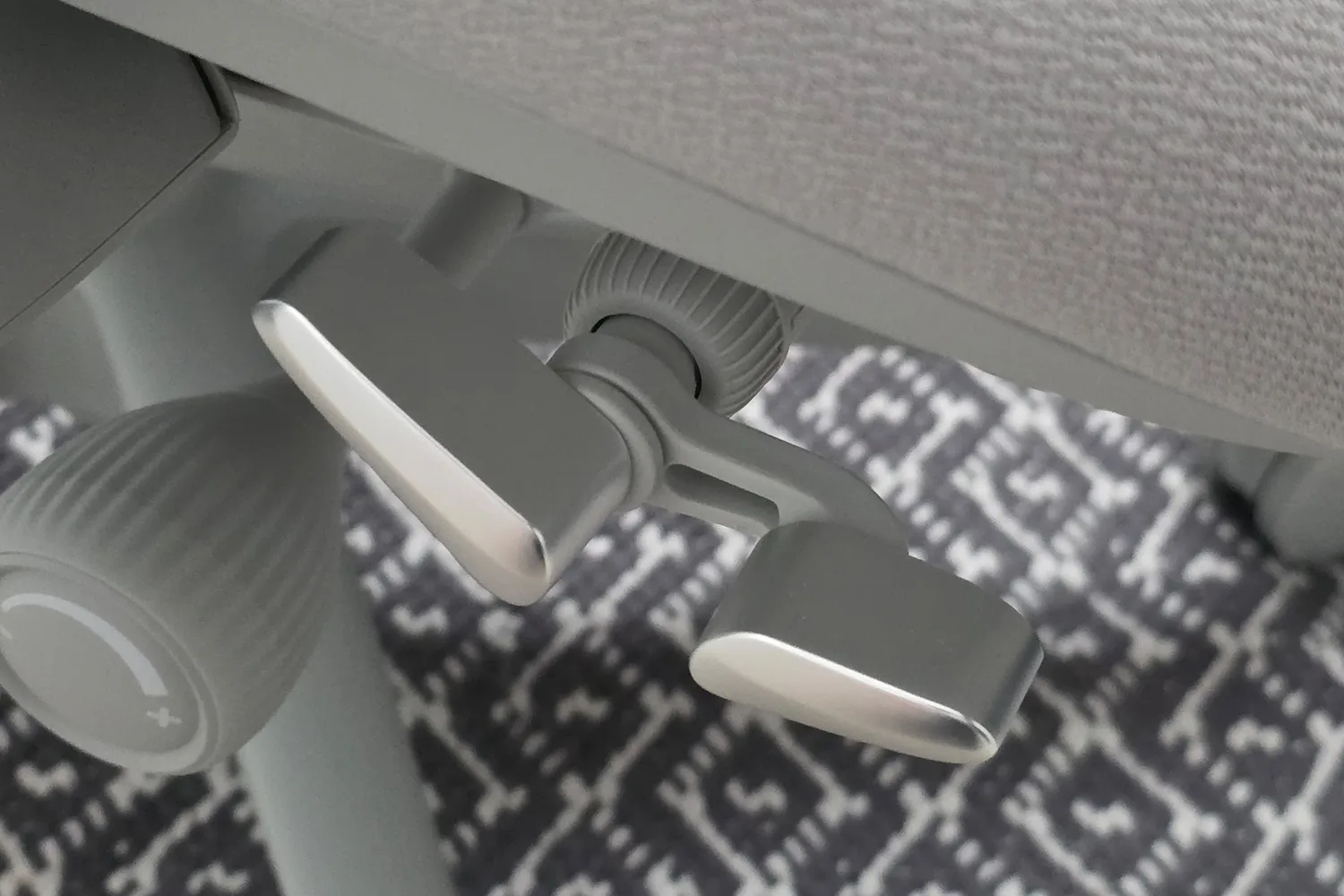 Возможность регулировать поясничную поддержку нажатием кнопки заставила меня почувствовать себя в кресле дорогого автомобиля, а не офисного стула. Кнопки на левом подлокотнике поднимают и опускают уровень поддержки, позволяя точно настроить ее, не меняя своего обычного положения — попробуйте сделать то же самое на креслах с неудобными ручными регулировками.