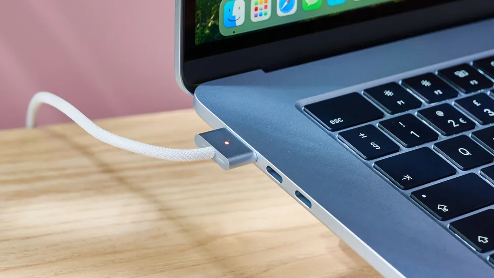 Новые MacBook Air с процессором M4 также доступны в новом цвете: небесно-голубом. Однако не думайте, что это яркий оттенок, как у iMac. Это более сдержанный металлический цвет с оттенком синего, и, несмотря на его сдержанность, он мне нравится (Apple любезно прислала мне на обзор ноутбук в новом цвете). Кабель для зарядки MagSafe выполнен в цвете, соответствующем цвету MacBook Air, что является приятным дополнением.