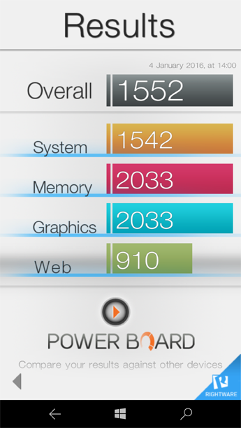 Напомню, данная SOC содержит 4 высокопроизводительных ядра Cortex-А57 и 4 энергоэффективных ядра Cortex-A53, а также GPU Adreno 430 с тактовой частотой 630 МГц. Объем оперативной памяти LPDDR4 составляет 3 Гб, а встроенный накопитель имеет объем 32 Гб. В наличии все самые современные стандарты связи: LTE Cat. 9 (до 300 Мбит/с), Wi-Fi 802.11ac, Bluetooth 4.1, NFC и Miracast. Навигационный модуль поддерживает GPS и ГЛОНАСС. Отдельно отмечу, что наличие двух слотов для SIM-карт не подразумевает их одновременной работы – смартфон поддерживает режим Dual Standby, то есть одновременное ожидание, но поддержки одновременных звонков по двум «симкам» нет. Качество приема сигнала сети хорошее, субъективно оно лучше, чем в предыдущих флагманских моделях Nokia/Microsoft. Основный динамик на максимальной громкости дает искажение высоких частот, разговорный динамик подобным недостатком не страдает – голос собеседника слышен без искажений. К воспроизведению музыки в наушниках претензий нет, максимальная выходная мощность достаточна, чтобы слушать музыку даже в шумных местах.