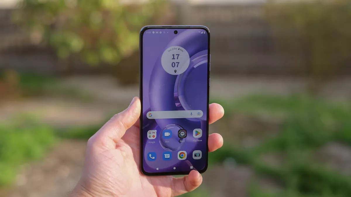 Вместо этого Motorola обратилась к могущественной цветовой организации Pantone, разместив на задней панели фиолетовой модели виртуальный образец одного из цветов компании. Смысл: это не просто цвет, это цвет, сертифицированный Pantone. Существует несколько вариантов, а именно Very Peri, Ice Palace, Black Onyx и Aqua Foam, и именно первый из них мы использовали для этого обзора.