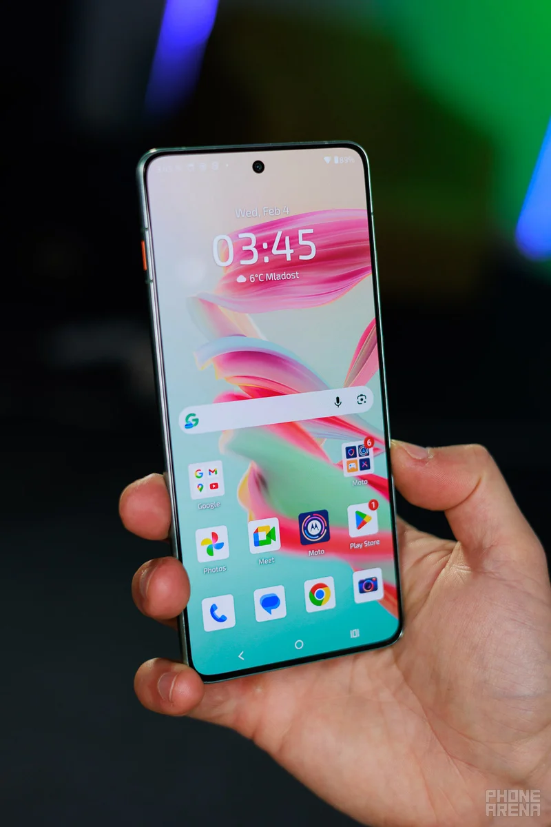 Здесь установлен 6,7-дюймовый pOLED-экран с частотой обновления до 120 Гц. Однако частота обновления экрана снижается до 60 Гц, и он не может достичь той частоты в 1 Гц, которую могут обеспечить большинство флагманских моделей. В этот раз экран полностью плоский, что мне определенно понравилось. Чрезмерно изогнутый экран на старом Edge 60 был слишком экстремальным и выглядел устаревшим, как будто из 2019 года.