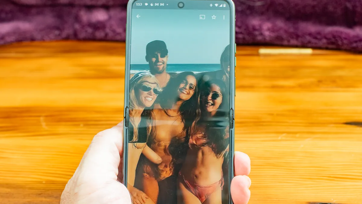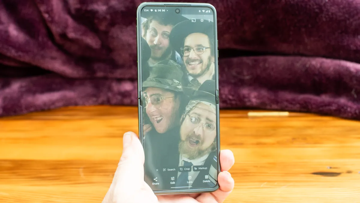 У Razr Plus еще больше возможностей для творческой съемки. Вы можете сложить телефон различными способами, чтобы он стоял сам по себе. Если вы хотите сделать селфи, когда телефон направлен вверх, просто поднимите ладонь, и камера начнет обратный отсчет. Также есть режим Photobooth, который сделает четыре снимка подряд и разместит эту композицию в Google Photos.