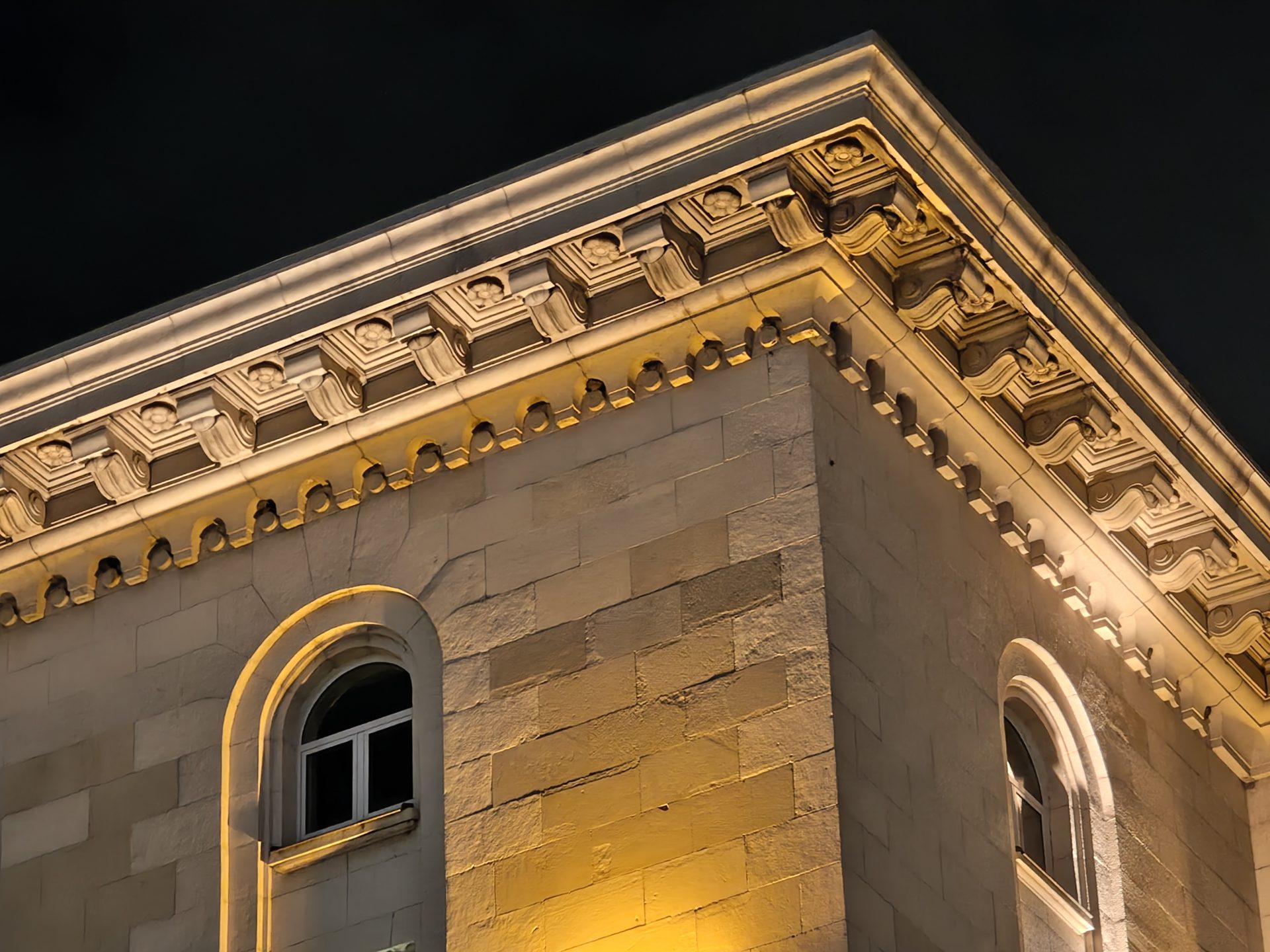 Большинство телефонов испытывают трудности с 2-кратным цифровым зумом ночью, и Signature не исключение: в темных сценах изображение получается «мягким» и размытым. Тем не менее, если в кадре есть хорошо освещенный фасад здания, можно получить вполне приличный результат по детализации.
