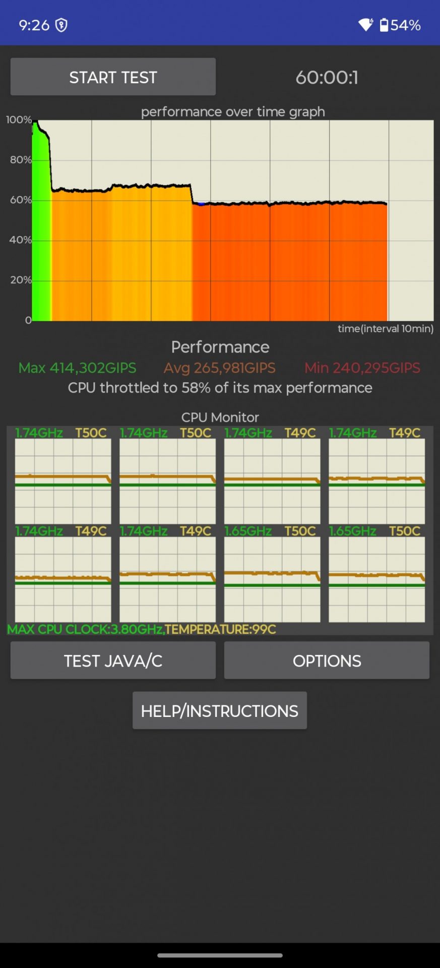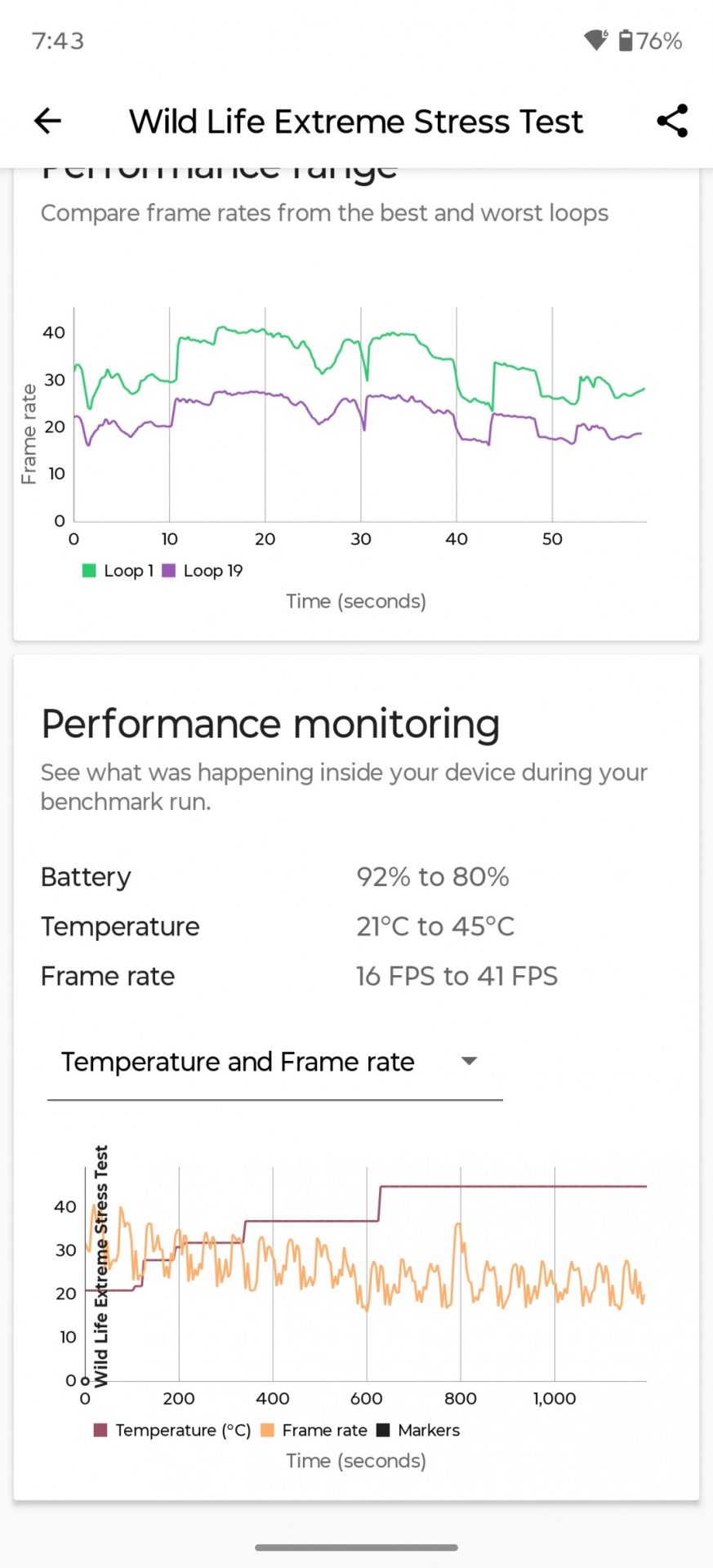 Однако стабильность работы под нагрузкой — это совсем другая история. К сожалению, Motorola Signature довольно агрессивно снижает производительность из-за перегрева (троттлинг) и со временем теряет значительную часть своей мощности. Конечно, стресс-тесты имитируют наихудший сценарий, но и в тяжелых играх можно ожидать просадки частоты кадров при длительных сессиях.