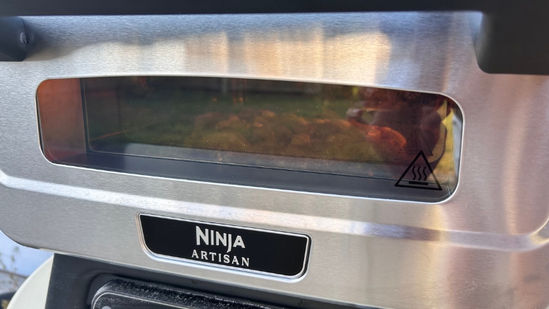 Благодаря матовому серому корпусу, четырём чёрным ножкам и отделке из нержавеющей стали Ninja Artisan имеет привлекательный дизайн. Дверца занимает три четверти передней части печи и, в отличие от электрической печи Ninja Woodfire оснащена смотровым окошком и выключателем света, так что вы можете наблюдать, как ваша пицца поднимается, пузырится и готовится прямо у вас на глазах.