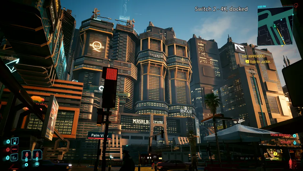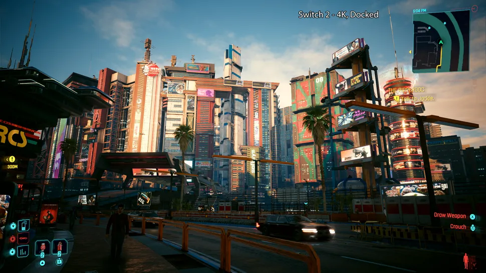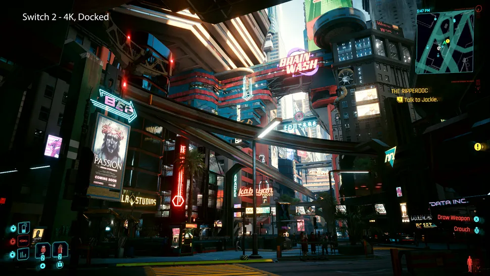 Помимо ограниченных ресурсов графического процессора, мощность центрального процессора Switch 2 могла ограничивать количество игроков в той или иной части Найт-Сити. Если посмотреть на одни и те же локации в одно и то же время на ПК с максимальными настройками, то можно заметить, что улицы Найт-Сити выглядят гораздо более пустынными.
