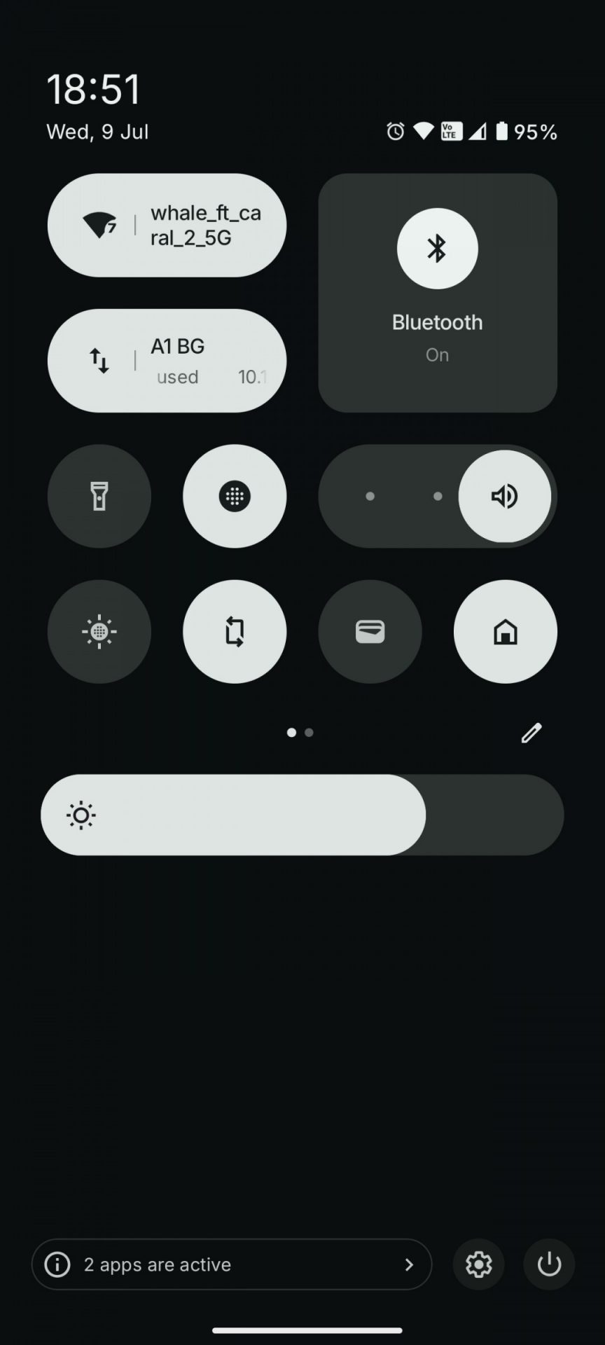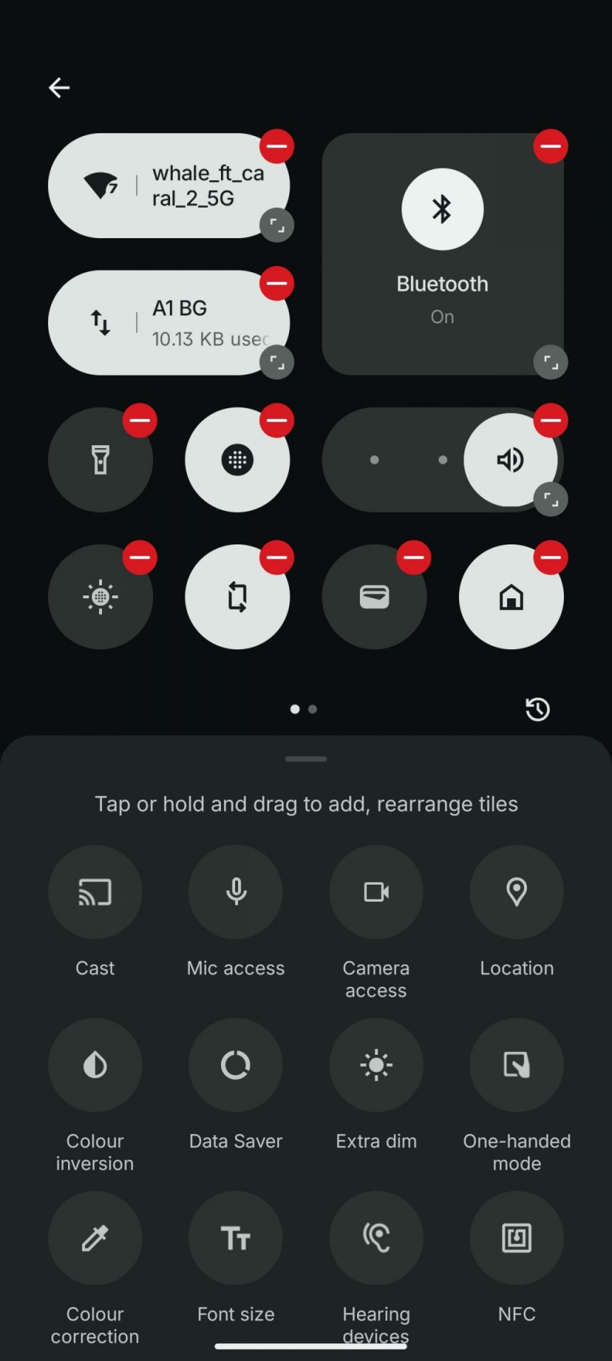 Панель уведомлений и быстрые настройки представляют собой нечто среднее между стандартным Android и настройками Nothing. Начиная с версии Nothing OS 2.5, два верхних больших переключателя быстрых настроек изменили форму с круглой на квадратную с закруглёнными углами. Это изменение сохранилось и в версии 3.5.
