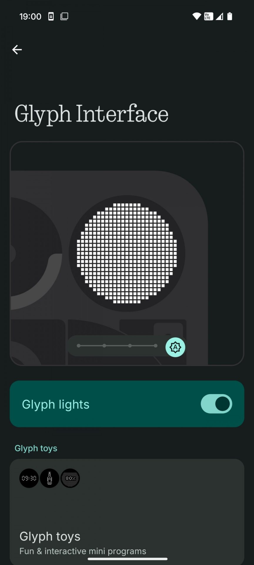 Пожалуй, самая интересная функция персонализации в Nothing Phone (3) — это новая матрица глифов. Для неё выделено отдельное меню в настройках. Вы можете настроить интенсивность свечения светодиода, и даже есть опция автоматической регулировки яркости. По умолчанию дисплей переключается на глифы, но не ждите, что он будет сильно загружен.