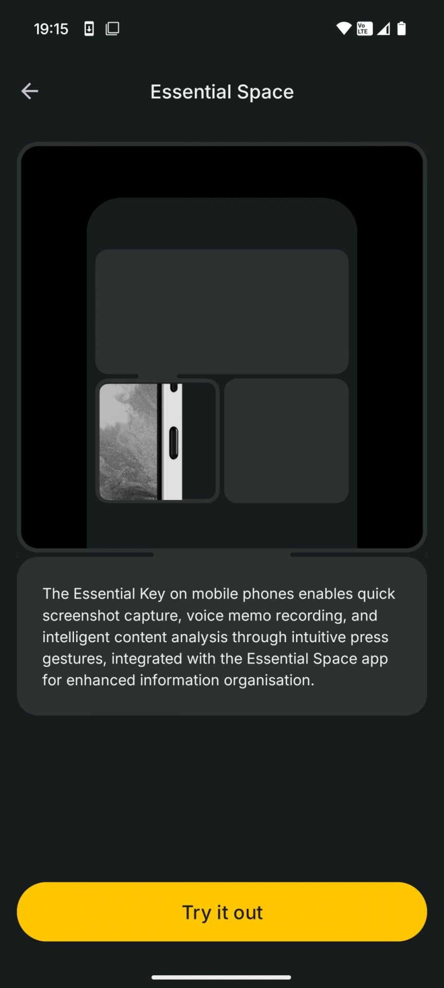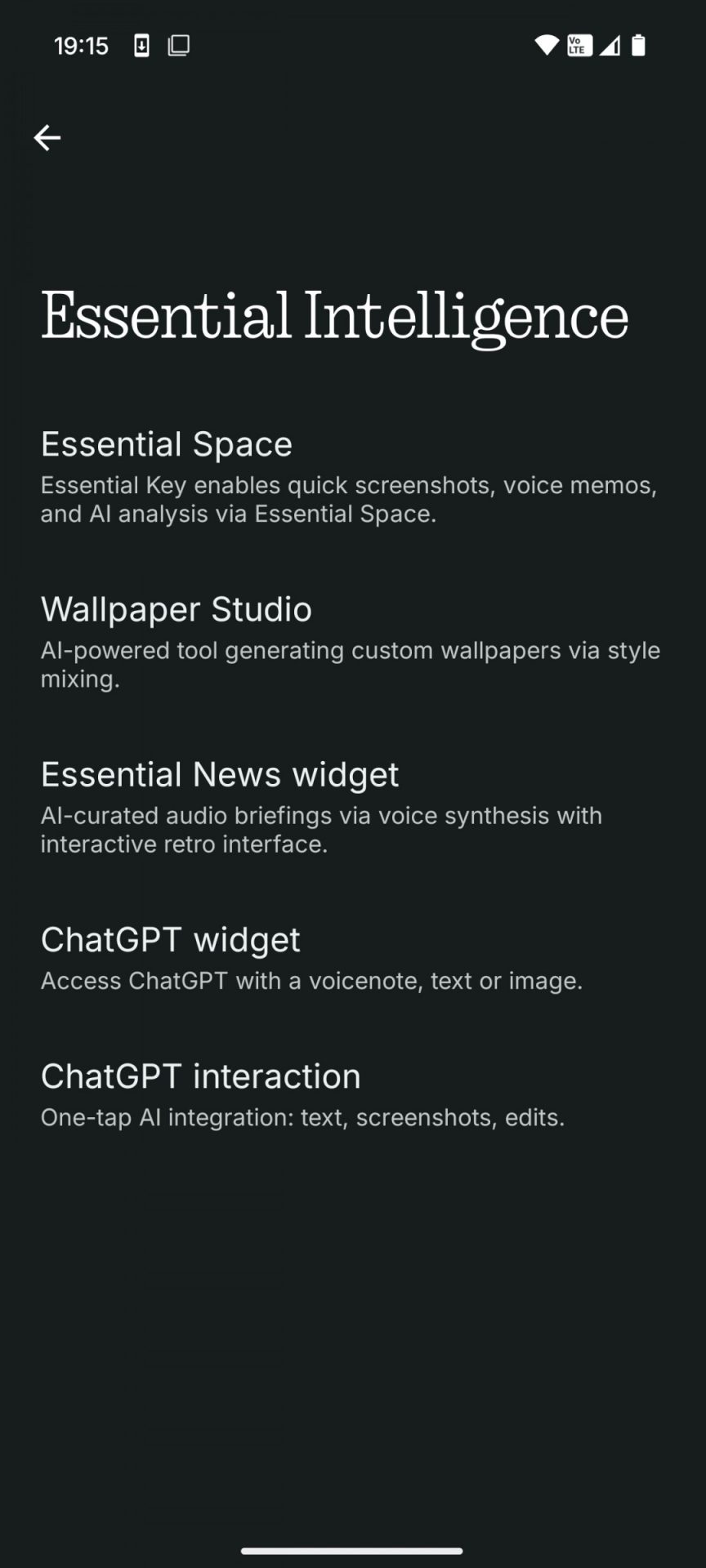 Essential Space — это центр на базе искусственного интеллекта, который помогает вам организовывать повседневные задачи. Насколько мы понимаем, вы можете отправлять в него скриншоты или фотографии одним нажатием клавиши Essential, расположенной прямо под кнопкой питания, и добавлять к ним примечания по мере необходимости.