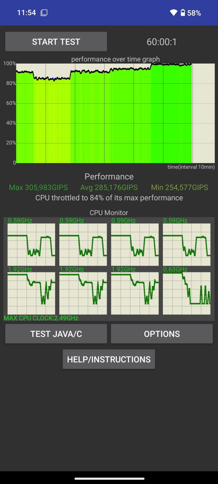Эта тактика хорошо работает, поскольку даже при длительном стресс-тестировании чипсет Nothing Phone (3a) Pro практически не теряет производительности и отлично справляется с температурным регулированием без каких-либо значительных падений или скачков производительности.