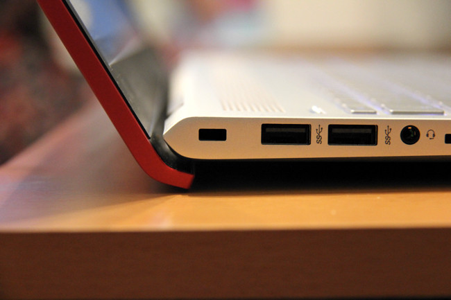 По собственным измерениям вес ноутбука составляет два килограмма. Корпус толщиной 2 см визуально сужается в направлении к тачпаду. В его боковых торцах нашлось место для нескольких USB-разъемов, слота для SD-карт, разъемов для подключения зарядного устройства и сетевого кабеля, выхода HDMI, а так же комбинированного разъема для проводных наушников или микрофона.