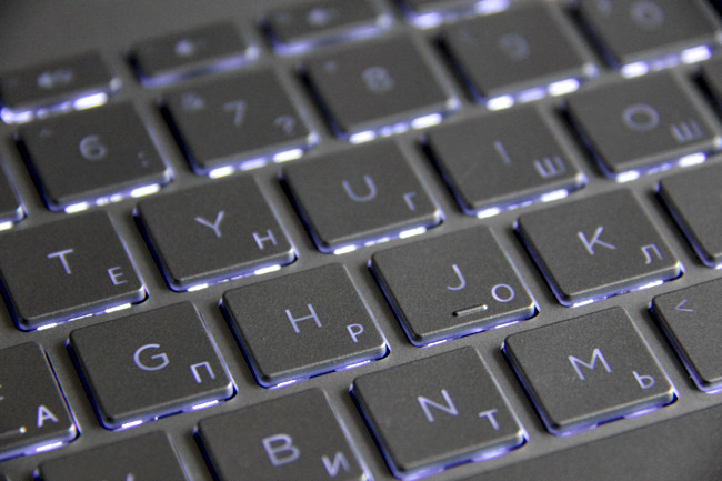 В начале работы отмечаешь, что клавиши полноразмерной клавиатуры имеют относительно короткий ход и увеличенное усилие нажатия. Отключаемая белая подсветка лишена регулировки яркости, но распространяется на все символы, включая кириллицу.
