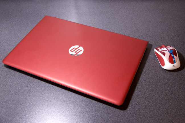 Выглядит герой обзора, как минимум, заметно. Можно спорить о том, насколько красиво и уместно ярко-красное исполнение внешней панели монитора с крупным серебряным логотипом HP по центру, но внимание к себе ноутбук, безусловно, привлекает.