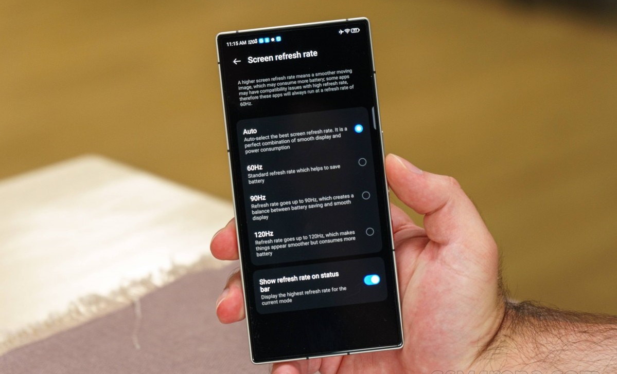 Red Magic 9S Pro предлагает четыре режима частоты обновления: 60 Гц, 90 Гц, 120 Гц и автоматический режим. Первые три режима фиксируют частоту обновления, тогда как автоматический позволяет системе самостоятельно выбирать оптимальную частоту в зависимости от текущей ситуации. Настройка достаточно проста: система всегда будет использовать максимальную частоту обновления, независимо от того, работают ли системные или сторонние приложения и меню. Если оставить телефон без активности на несколько секунд, частота обновления автоматически снизится до 60 Гц для экономии энергии. Аналогично, при просмотре полноэкранных видео происходит то же самое; высокая частота в 120 Гц не нужна для воспроизведения видео со скоростью 24, 30 или 60 кадров в секунду.