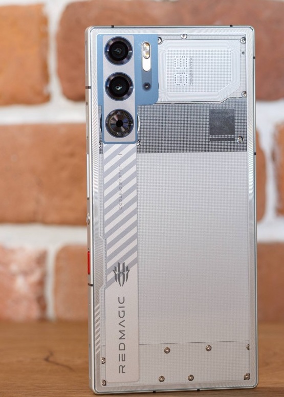 Дизайн Red Magic 9S Pro основан на моделях 8/8S Pro и 7/7S Pro, сохраняя тот же стиль, что и его предшественники. У него такая же массивная конструкция, как у 8 Pro, но задняя панель выполнена из стекла. Мы оценили, как металлическая пластина выглядела и ощущалась в 8-й и 7-й сериях, однако 9 Pro по-прежнему выглядит впечатляюще. Телефон официально представлен в четырех цветах: Sleet (черный), Snowfall (серебристый), Cyclone (прозрачный черный) и Frost (белый). У нас на тестировании версия Frost с прозрачным дизайном. Хотя «внутренности» устройства не полностью видны из-за различных узоров на поверхности, винты все же заметны, что придает ему необычный вид. Если такой стиль вам не по душе, вы всегда можете выбрать один из вариантов без прозрачной задней панели.