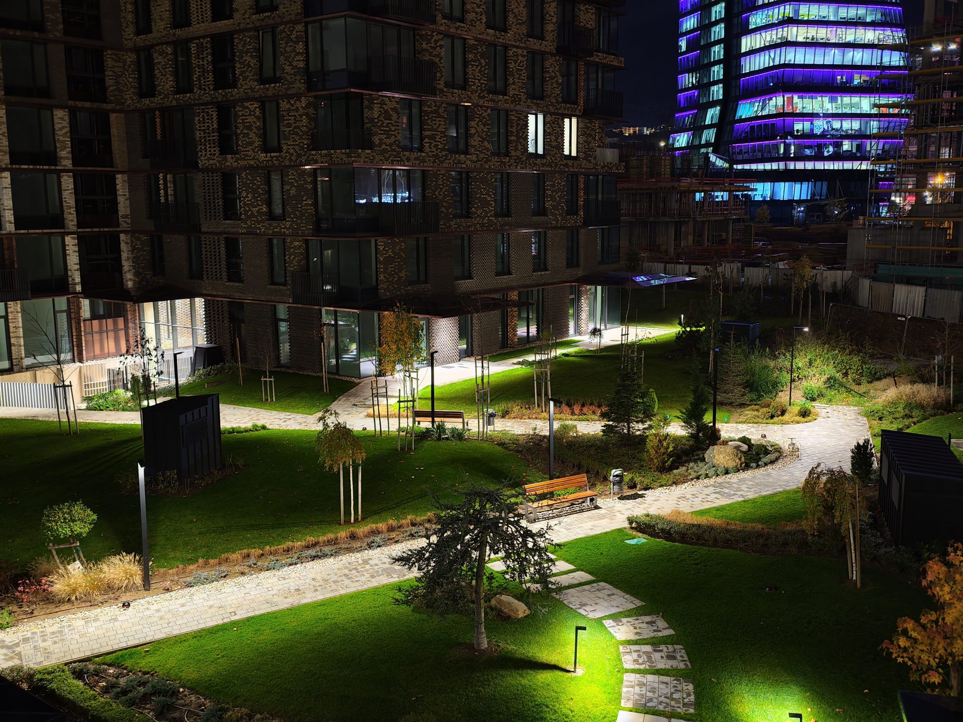 В темноте основная и сверхширокоугольная камеры предлагают очень хорошую резкость и детализацию, и обе имеют тенденцию немного пересвечивать яркие участки, хотя они также хорошо прорабатывают темные области. Телеобъектив менее убедителен, производя мягкие клипы с эффектом «желе» от стабилизации.