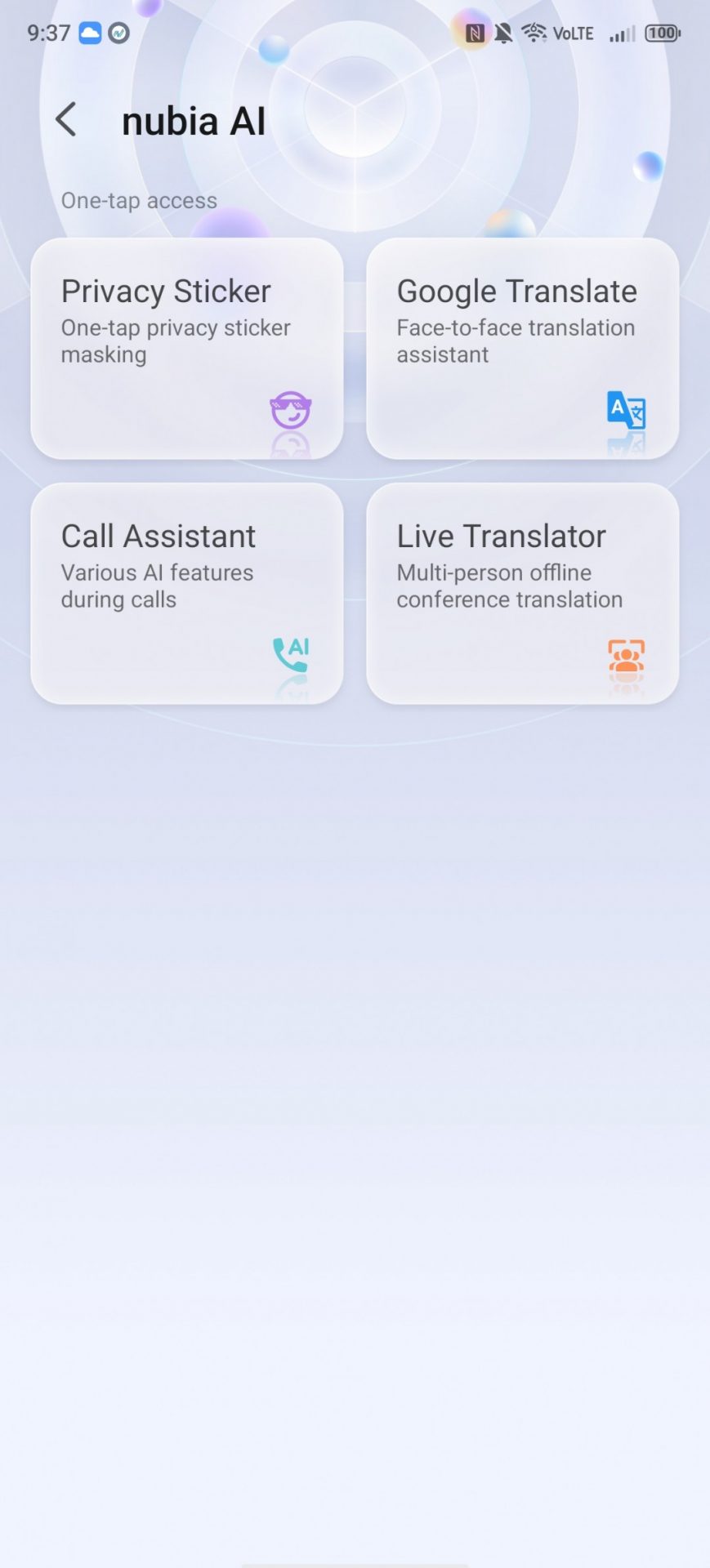 Доступны и некоторые другие функции на основе ИИ, наиболее заметной из которых является AI Translate. У нее есть две инкарнации: одна — для перевода во время звонка, другая — для разговоров лицом к лицу. Это собственная разработка ZTE, и общее количество поддерживаемых языков теперь выросло до 38.