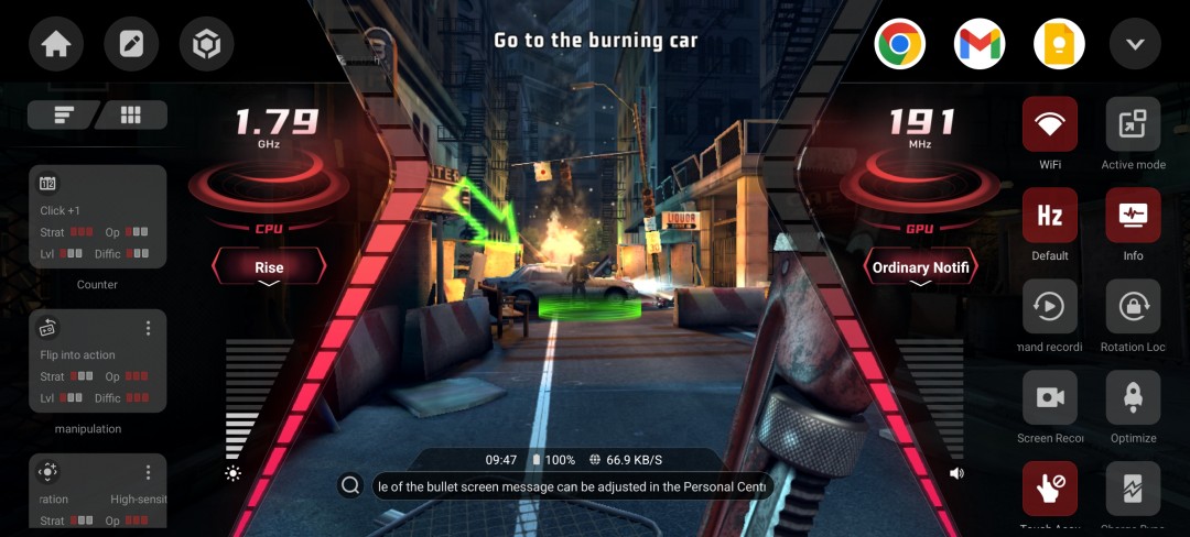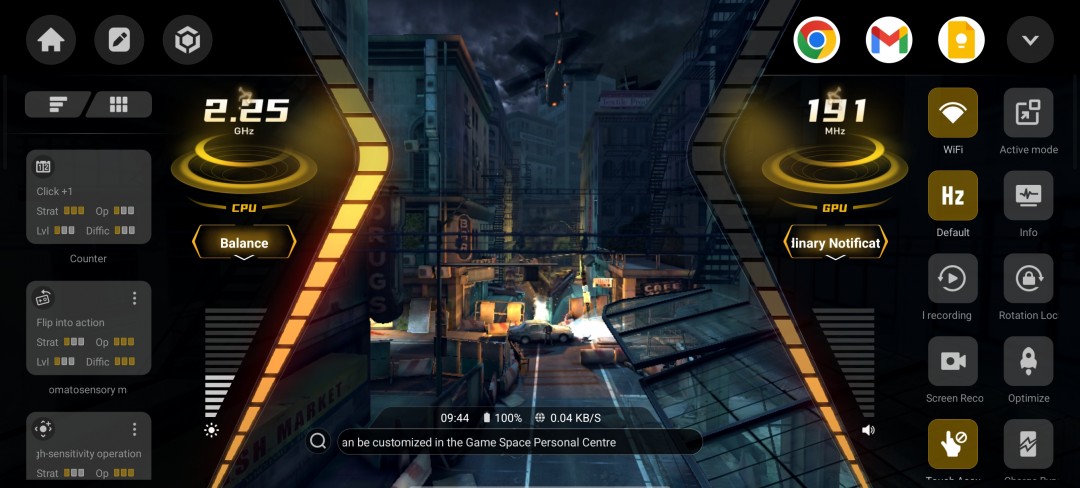 Разумеется, игровая утилита Energy Cube, которую обычно можно найти на телефонах RedMagic, здесь тоже есть. На первый взгляд она кажется перегруженной и запутанной, но на самом деле она очень функциональна и состоит из двух больших симметричных меню по обе стороны дисплея, причем большинство функций легко доступны одним касанием. Вы можете отслеживать частоту процессора и графического процессора, а также, что особенно важно, FPS в игре с помощью оверлея.