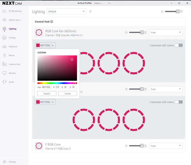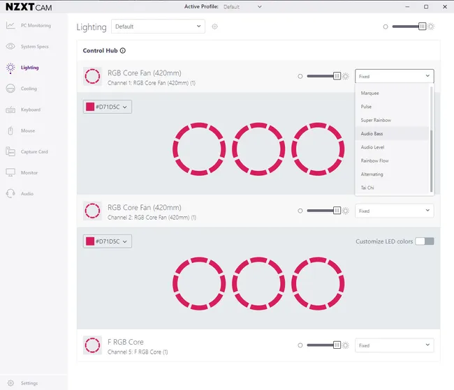 Эти вентиляторы поставляются с предустановленным программным обеспечением для управления NZXT CAM, которое позволяет легко настраивать подсветку и скорость вращения.