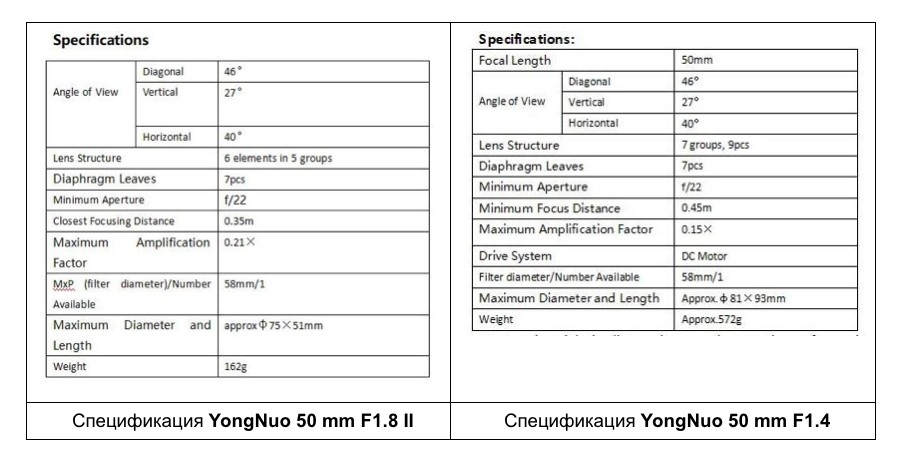 Объективы YongNuo 50 mm F/1.8 II и YongNuo 50 mm F/1.4