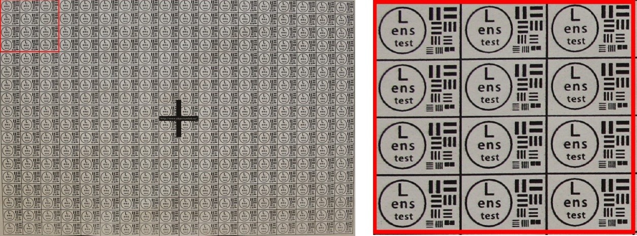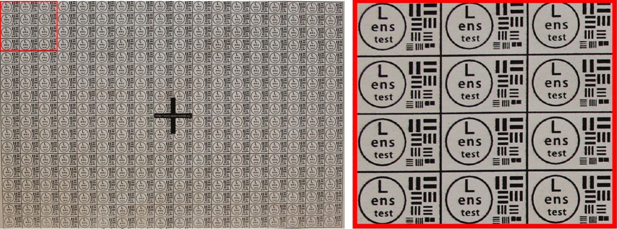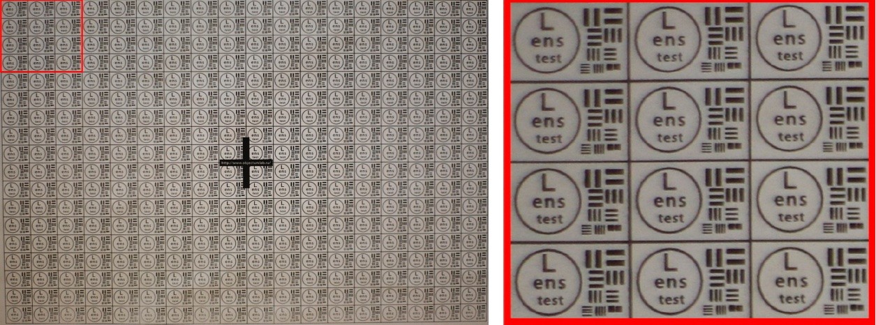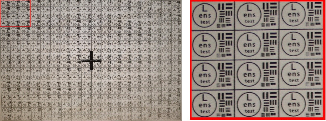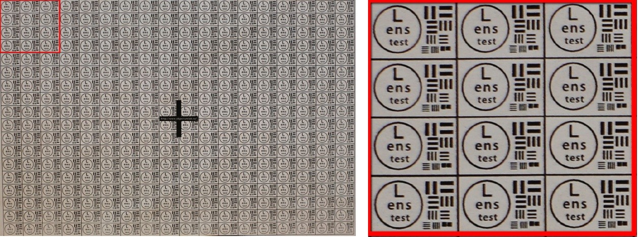 Падение резкости наиболее очевидно в правом нижнем углу снимков. Однако эта общая для обоих объективов черта, скорее всего, является следствием неточности установки камеры. Чтобы минимизировать влияние отсутствия точного угла в 90 градусов между мишенью и оптической осью объектива, для сравнения был выбран левый верхний угол изображения, как наиболее «удачный».