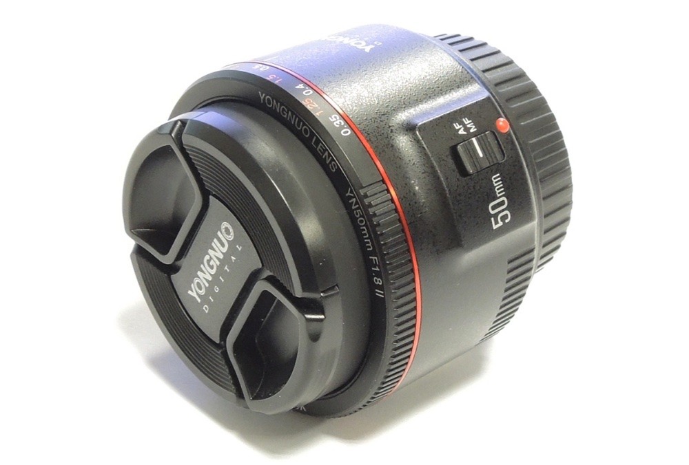 Прежде всего отметим красное колечко YongNuo 50 mm F1.8 II, которое сразу дает ему +100 к привлекательности в глазах каждого обладателя фототехники Canon.