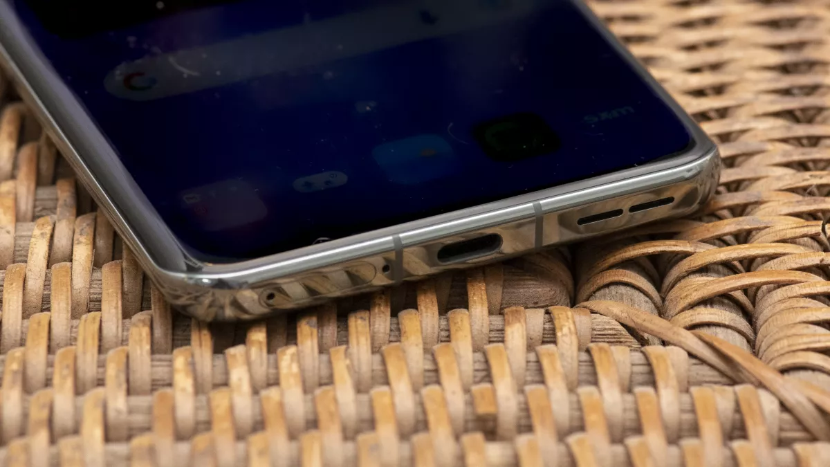 На нижней грани находится порт USB, а также слот для SIM-карты. Телефон также может работать с eSIM, или с комбинацией обеих (максимум две линии обслуживания между физической и цифровой SIM).