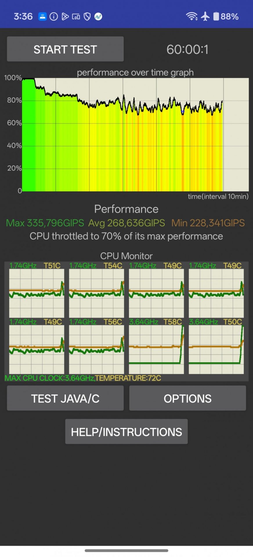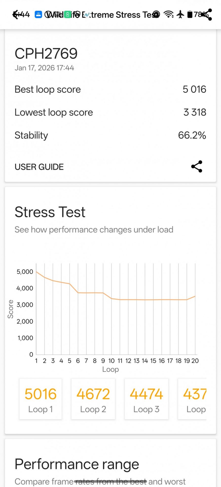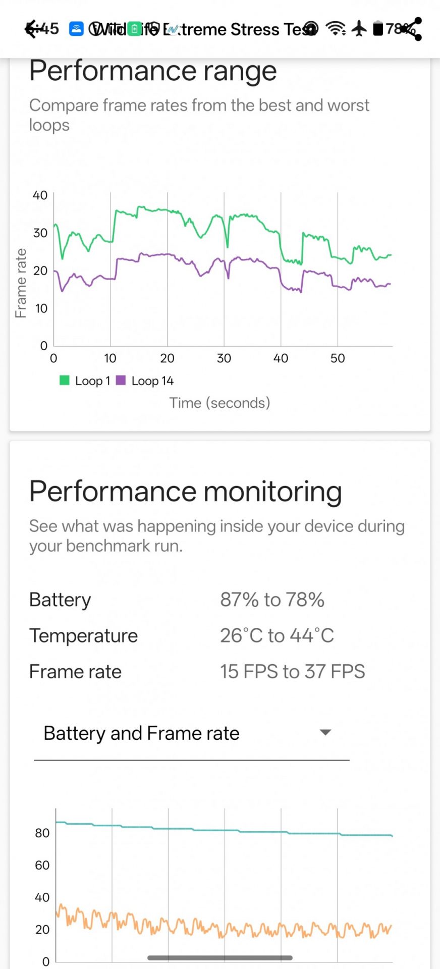 Для телефона с пассивным охлаждением и топовым процессором стабильность работы оказалась весьма достойной. В стресс-тесте процессора 15R сохранил 70% производительности, а в графическом стресс-тесте — 66%.