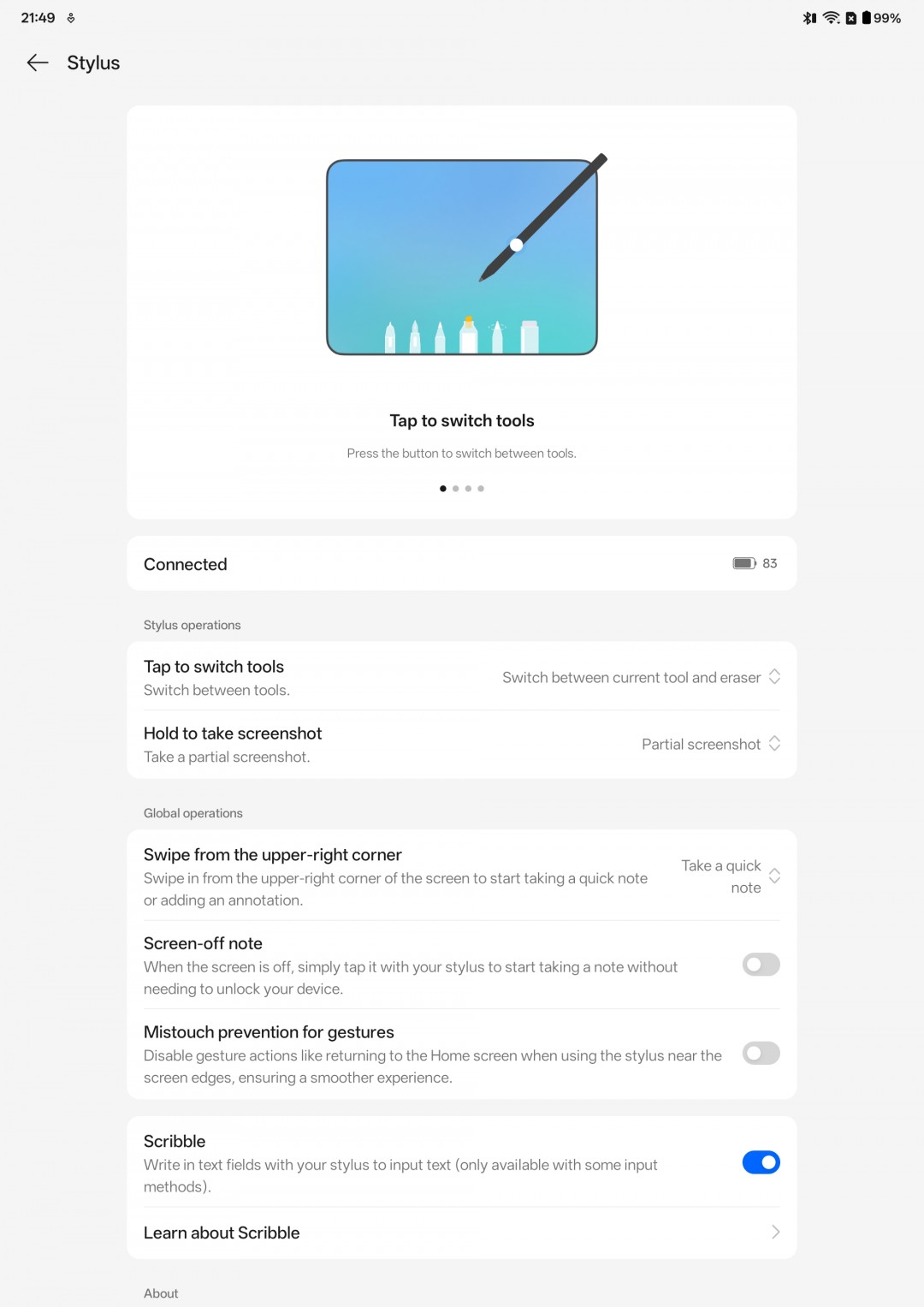 Стилус Stylo обеспечивает плавное письмо и рисование без задержек, а также поддерживает быструю зарядку. OnePlus заявляет, что всего 10 минут зарядки хватит на полдня использования.