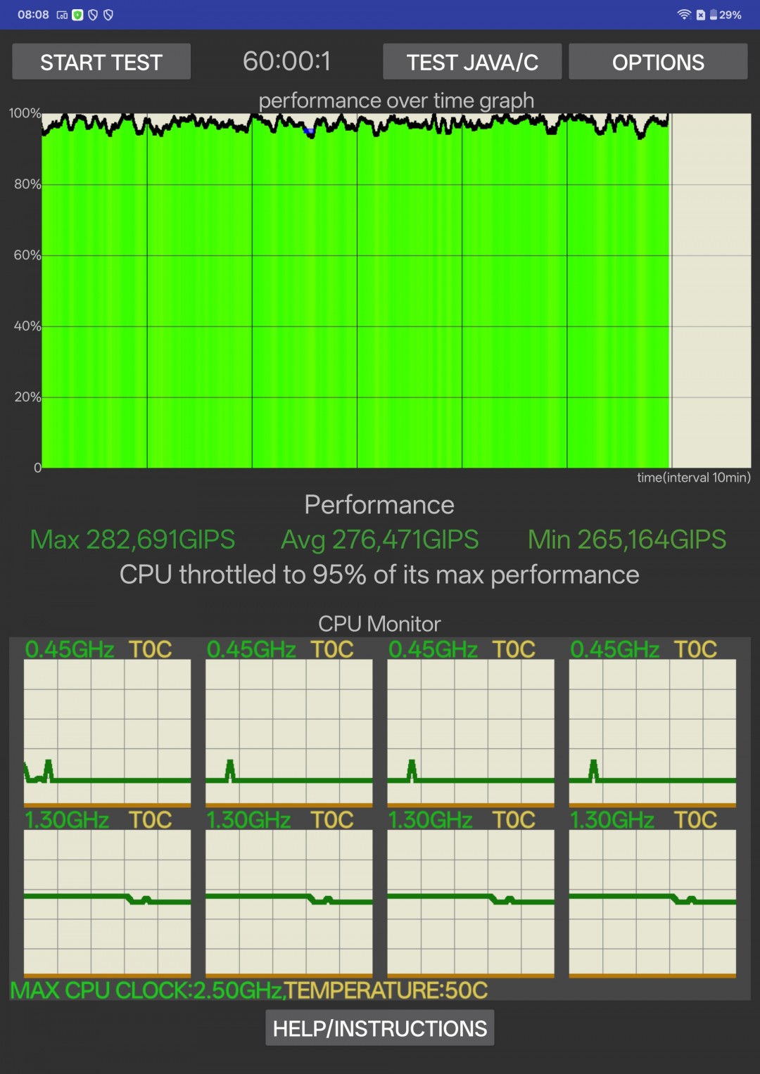 Стабильность работы Pad Go 2 превосходна — снижение производительности (троттлинг) практически отсутствует.