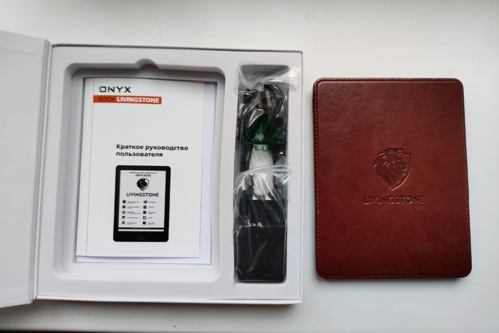 - Комплектация : Электронная книга ONYX BOOX Livingstone, руководство пользователя, чехол-обложка Smart Cover, USB-кабель, сетевое зарядное устройство, гарантийный талон.