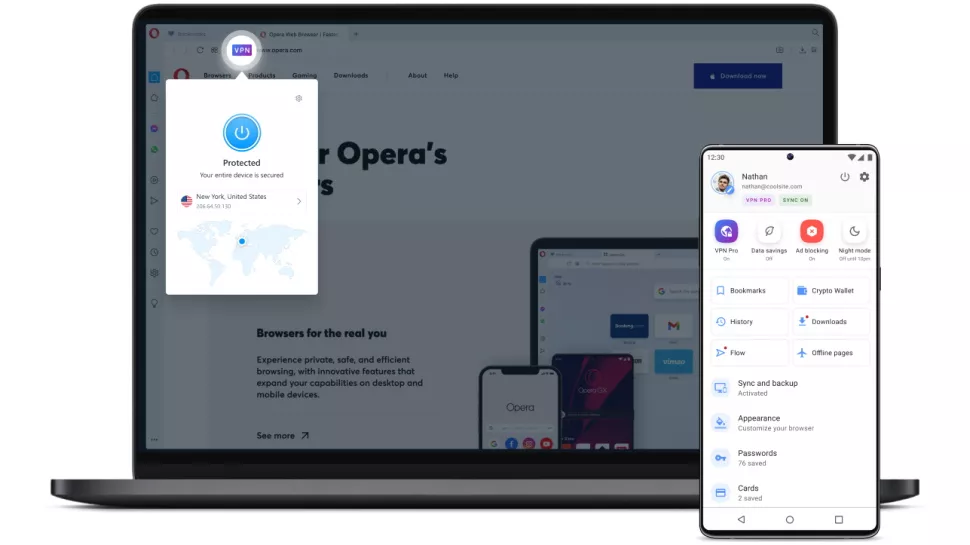 Теперь Opera представила Opera VPN Pro, настоящий общесистемный VPN, который позволяет защитить весь трафик приложений на шести устройствах Android, Windows или Mac.