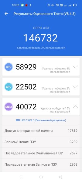 В недорогом смартфоне 2020 года привычно ожидаешь увидеть чипсет Mediatek, но Oppo A53 удивил — здесь используется свежий чипсет Snapdragon 460 от Qualcomm. Это преемник знаменитого Snapdragon 450, который одно время был почти стандартом для недорогих смартфонов, обеспечивая очень неплохой баланс цены и качества. В Snapdragon 460 добавились быстрые ядра Cortex-A73, и это самым положительным образом сказалось на производительности.