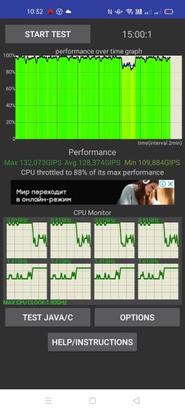 Да, результаты синтетических тестов скромны, но в реальной жизни смартфон не разочаровывает. Игры запускаются без каких-либо проблем, хотя и не на максимальных настройках, смартфон не греется даже при высокой нагрузке. Результаты троттлинг-теста тоже выглядят хорошо.