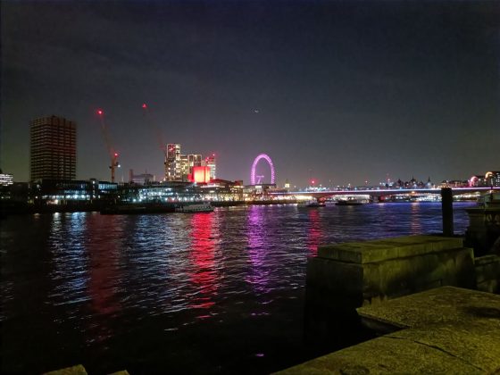 Кстати, о существенных недостатках: есть режим «Ночь», в котором ночные снимки почему-то выглядят гораздо хуже. Ниже вы видите два снимка, сделанных ночью; первый сделан с помощью обычной камеры без изменения настроек. Как видите, вода резкая, свет, отражающийся в ней, отчетливый и затухающий, а контраст между более темными и более светлыми участками привлекает внимание к центру. А в ночном режиме снимок превращается в картину, написанную масляной пастелью – настолько все на ней плывет.