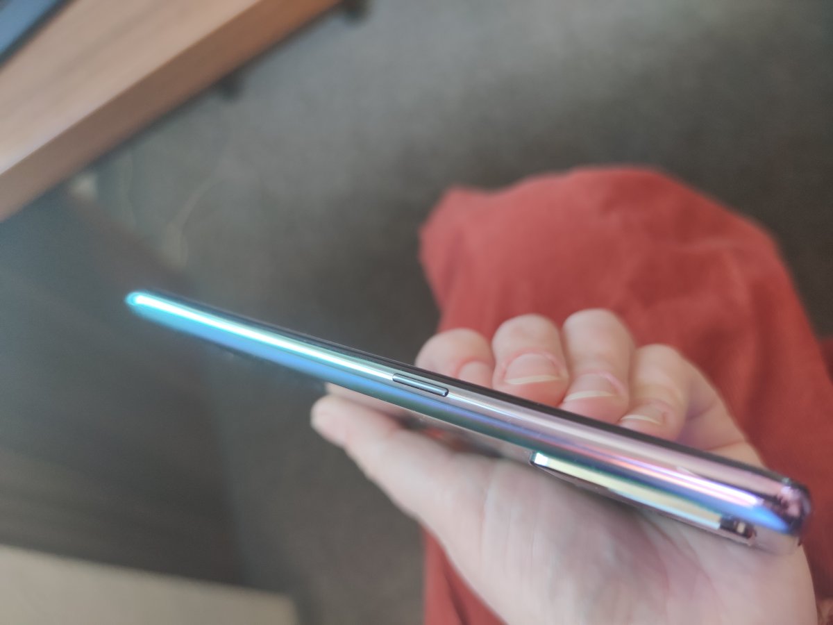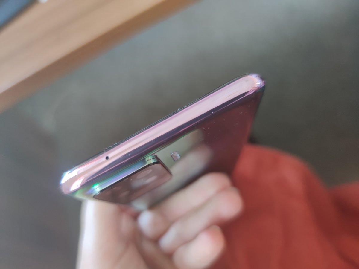 Oppo Reno5 Lite, кроме классического черного, представлен в лиловом цвете, который переливается красивым сиренево-голубым градиентом. Но увы — теперь в дизайне нет никакой «изюминки», даже изящную полосу, которая отличала Reno4 Lite от конкурентов на полке магазина, решили убрать. Наслаждаться цветом тоже долго не получится, следы от пальцев быстро портят красоту спинки.