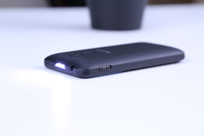 На правом торце устройства разместилась специальная кнопка-переключатель, которая нужна для активации светодиодного фонарика, находящегося на верхней грани телефона. Сам фонарик не очень яркий, но его яркости точно хватит, чтобы в темном подъезде, например, добраться до двери квартиры или достать ключи из кармана или сумочки. Функция безусловно удобная и, уверен, не раз пригодится.