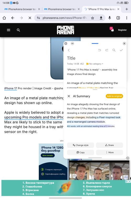 Honor Pad V9 поставляется с MagicOS 9.0 «из коробки», и этот проприетарный пользовательский интерфейс основан на Android 15. Помимо обычных функций Android (присутствуют все приложения Google), вы также найдёте инструменты искусственного интеллекта Honor. Они не на уровне Galaxy AI или Gemini Advanced, но работают и действительно полезны.