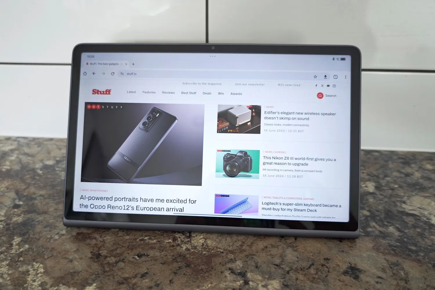Lenovo Tab Plus привлекает внимание своим доступным ценником по сравнению с другими планшетами на Android. Его 11,5-дюймовый ЖК-экран выглядит ярким и красочным в помещении, но на улице при ярком солнце сложно разглядеть темные изображения из-за скромной яркости в 400 нит. Тем не менее, даже в самых темных сценах кино и сериалов получиться насладиться просмотром. Lenovo использовала ЖК-панель с умом, и это стоит отметить, несмотря на недостатки в яркости.