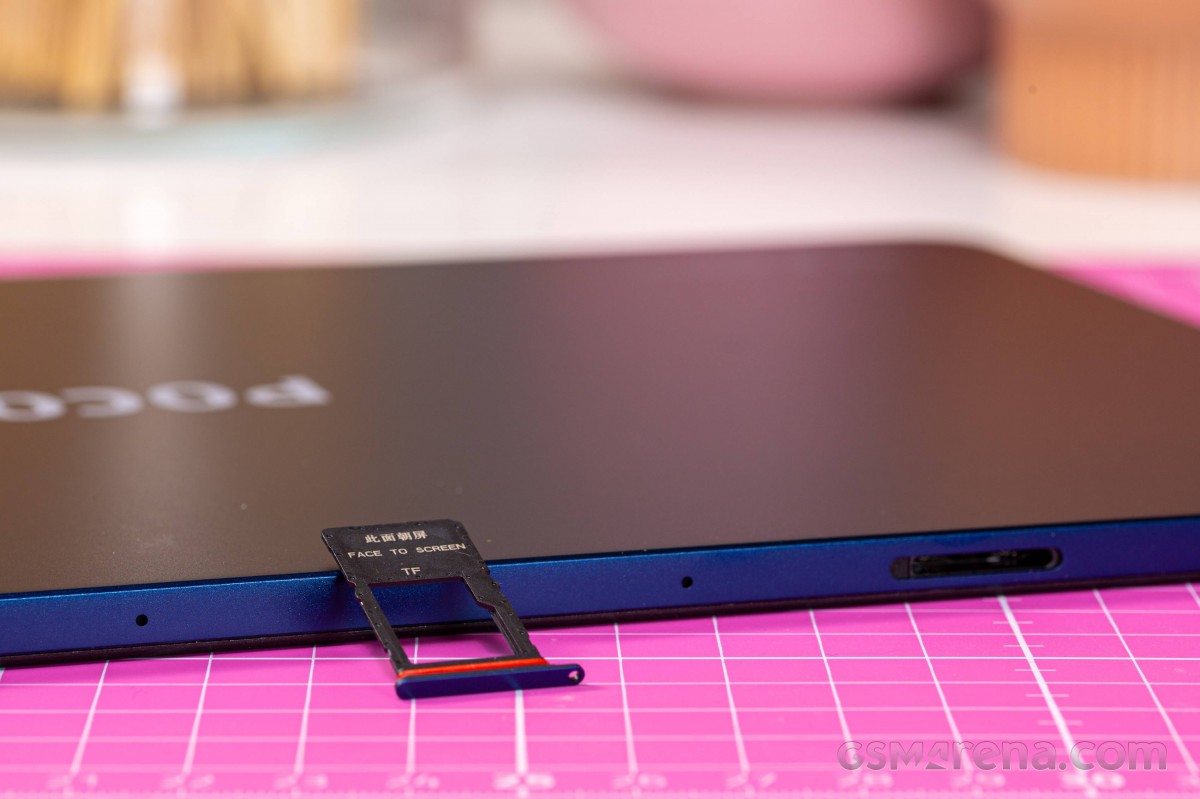 Кроме того, на коротких гранях нашлось место для классического аудиоразъема, порта USB-C и кнопки питания. Качелька регулировки громкости, два микрофона и лоток для карты памяти microSD вынесены на одну из длинных сторон планшета.