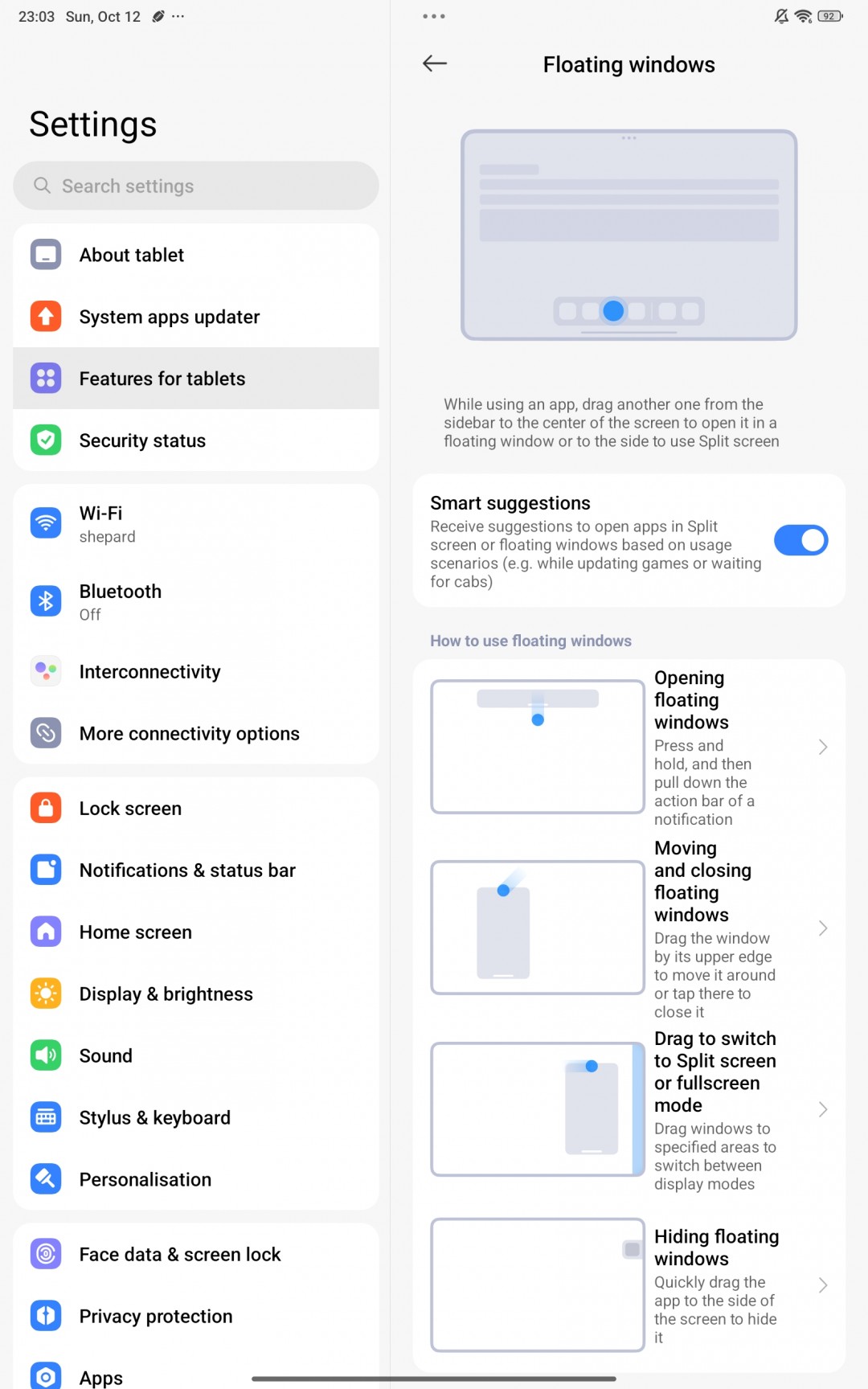 В настройках предусмотрен специальный раздел «Функции для планшетов». Здесь собраны инструкции по полезным жестам для управления многозадачностью (плавающие окна, разделение экрана), а также настройки оптимизированного двухстраничного отображения для некоторых приложений.