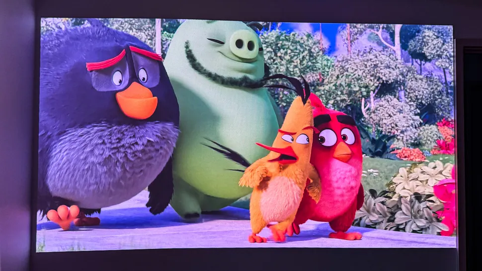 Меня особенно впечатлили анимационные фильмы — система с тремя лазерами в сочетании с поддержкой широкого цветового спектра C2 Ultra обеспечивала превосходное качество цветопередачи. Следует отметить, что изображения, представленные в этом обзоре, не совсем передают качество картинки — чтобы впечатлиться, нужно увидеть её в реальности. Изображениям присущ своеобразный розовый оттенок, которого точно нет на изображении, проецируемом на стену.