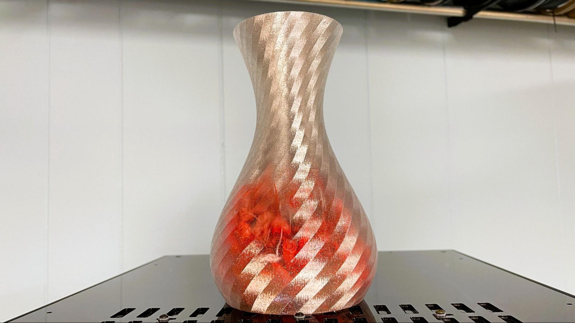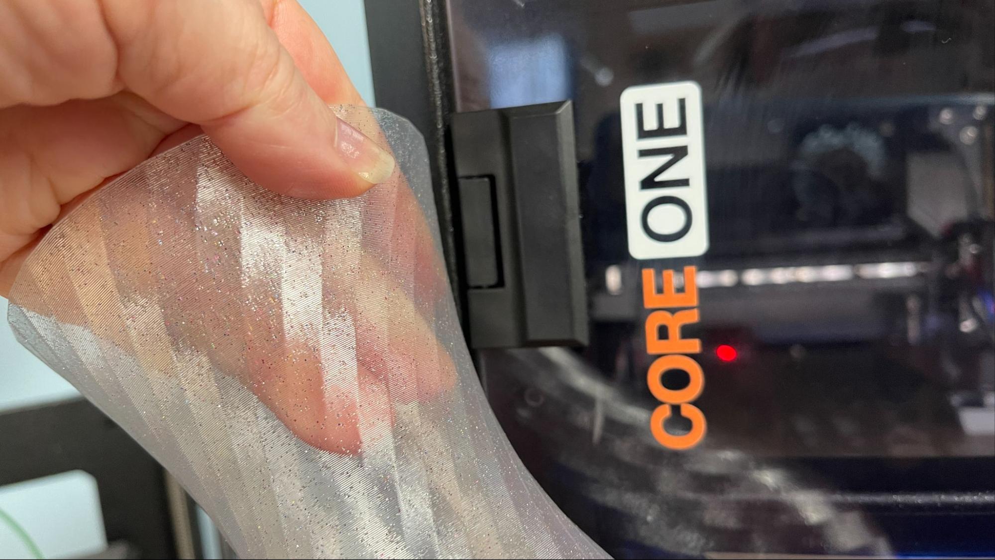 Поскольку я работала над проектами ко Дню святого Валентина, я быстро сделала вазу, используя приложение Vase Maker от Maker World. Это удобное небольшое приложение от Bambu Lab, которое, к счастью, генерирует модели для любых принтеров. Ваза была напечатана с использованием прозрачного PLA-пластика Funfetti от CookieCad.