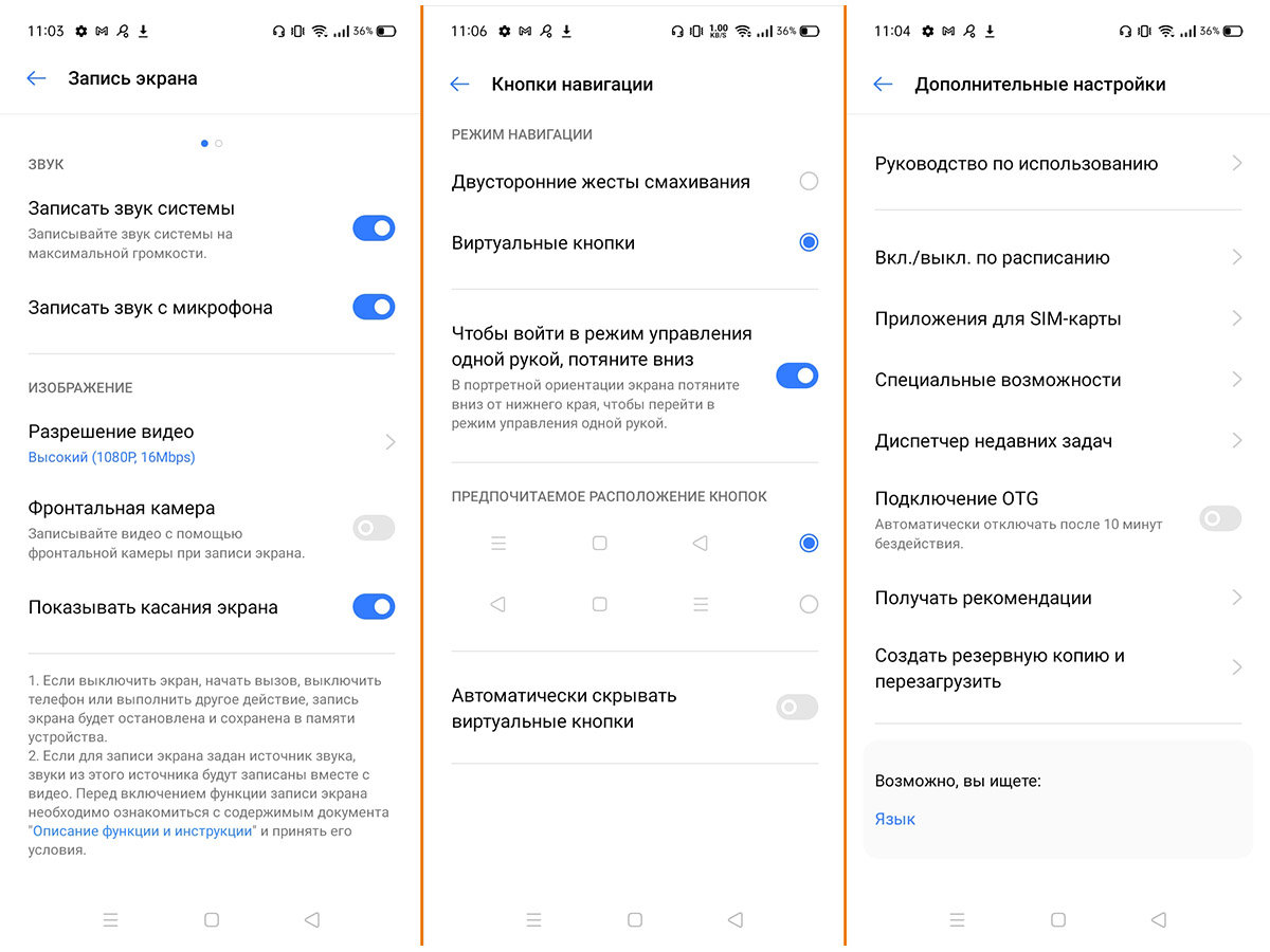 Операционная система представлена десятой версией Android с фирменной оболочкой realme, которая работает шустро и имеет много настроек. Среди них управление жестами и смена расположения наэкранных кнопок, а также клонирование приложений, разделение экрана, режим управления одной рукой, запись изображения с дисплея и масса других полезных возможностей. Значок для быстрого включения/отключения NFC изначально недоступен в верхней шторке уведомлений, но его получается добавить вручную через настройки.