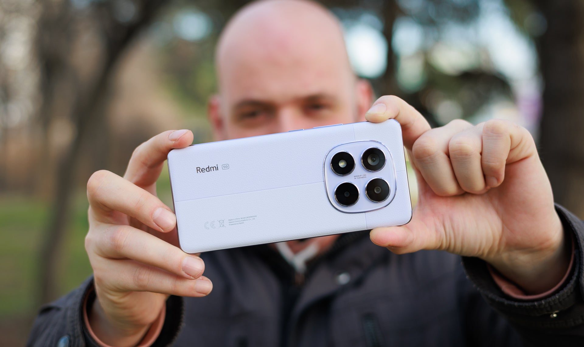 Нам нравится задняя панель из веганской кожи этого телефона Redmi. Она приятная на ощупь и является приятным изменением по сравнению со стеклянными телефонами, а также имеет геометрическую форму, которая придаёт телефону индивидуальность.