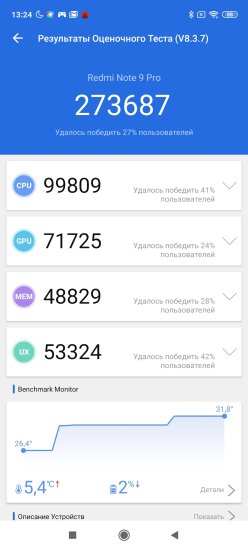 Сравнивая результаты синтетических тестов Redmi Note 9 Pro с результатами его предшественников — Redmi Note 8 Pro и Redmi Note 8T, мы видим, что новый смартфон существенно обогнал второй и почти догнал первый.
