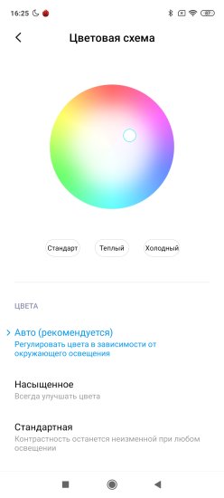 Заявленная стандартная яркость невелика, а авторегулировка подсветки срабатывает с небольшим опозданием. Но в целом датчик освещенности работает неплохо, и дисплей остается комфортным для глаз при любом освещении. Цветопередача регулируется довольно гибко, а можно, не заморачиваясь, включить «Авто» в настройках, и тогда смартфон сам будет регулировать цвета и контрастность в зависимости от внешних условий.