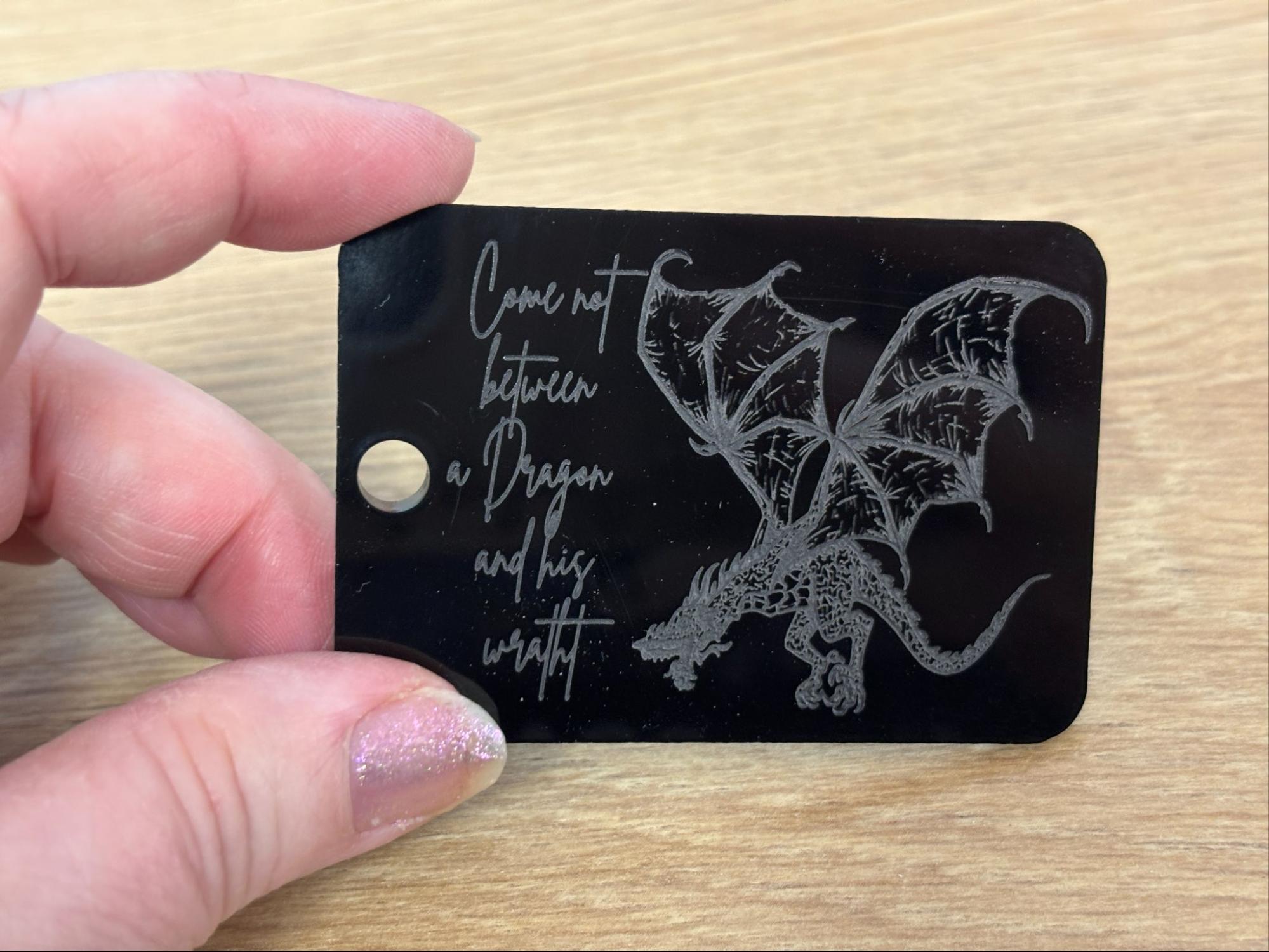 Лазер MOPA способен гравировать ювелирные изделия всего за несколько секунд, а позиционирование камеры отличается поразительной точностью. Эти бирки получаются четкими и аккуратными, и даже при работе с мелкими предметами у меня не возникало проблем с нанесением рисунка именно там, где я хотела.