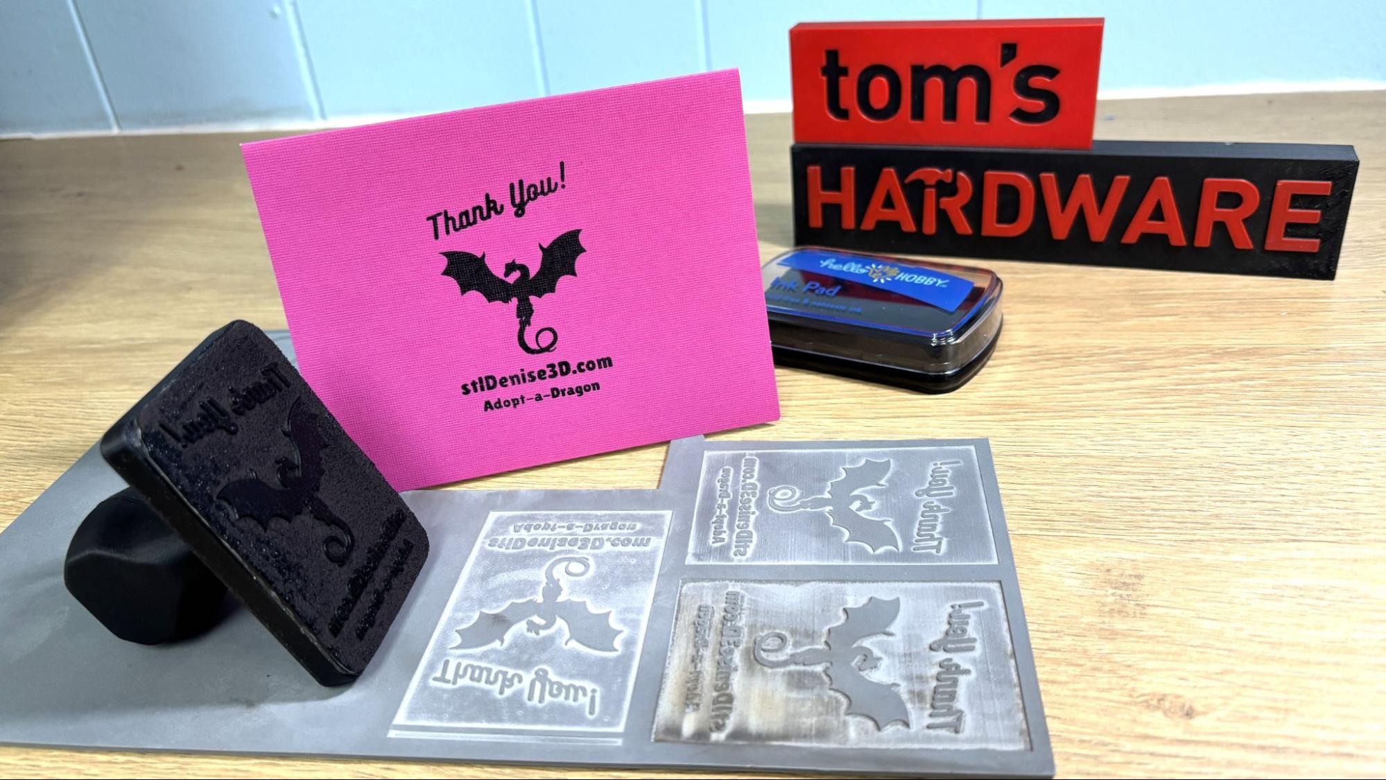 Снова используя клипарты из Canva, мне удалось создать отличный резиновый штамп с помощью диодного лазера. Однако пришлось пройти через некоторые испытания, в прямом смысле слова. В конце концов я нашла правильные настройки, чтобы избежать обгорания материала штампа, используя 4 прохода с мощностью 40 % при разрешении 600 DPI и длительностью точки 300. Работая медленно и безопасно, гравировка заняла 1 час 33 минуты. Рекомендуемые настройки были теми же, но 1 проход с мощностью 85%, что привело к довольно впечатляющему возгоранию в камере. Датчик пламени отключил лазер, что погасило пламя. Это стало хорошим напоминанием о необходимости держать огнетушитель поблизости при работе с горючими материалами.