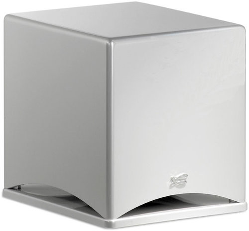 Динамик диаметром 30 см встроен в нижнюю грань, приподнятую над плитой основания на аркаде. Акустическое оформление – закрытого типа. На передней панели у сабвуфера – небольшой ЖК-дисплей и блок кнопок управления/настройки, на задней – разъемы для высоко- и низкоуровневого подключения (все стерео), а также необычные для этого типа АС балансные XLR-входы. Есть и высокоуровневый выход, позволяющий подключить дополнительные сабы. Предусмотрен также пульт ДУ.